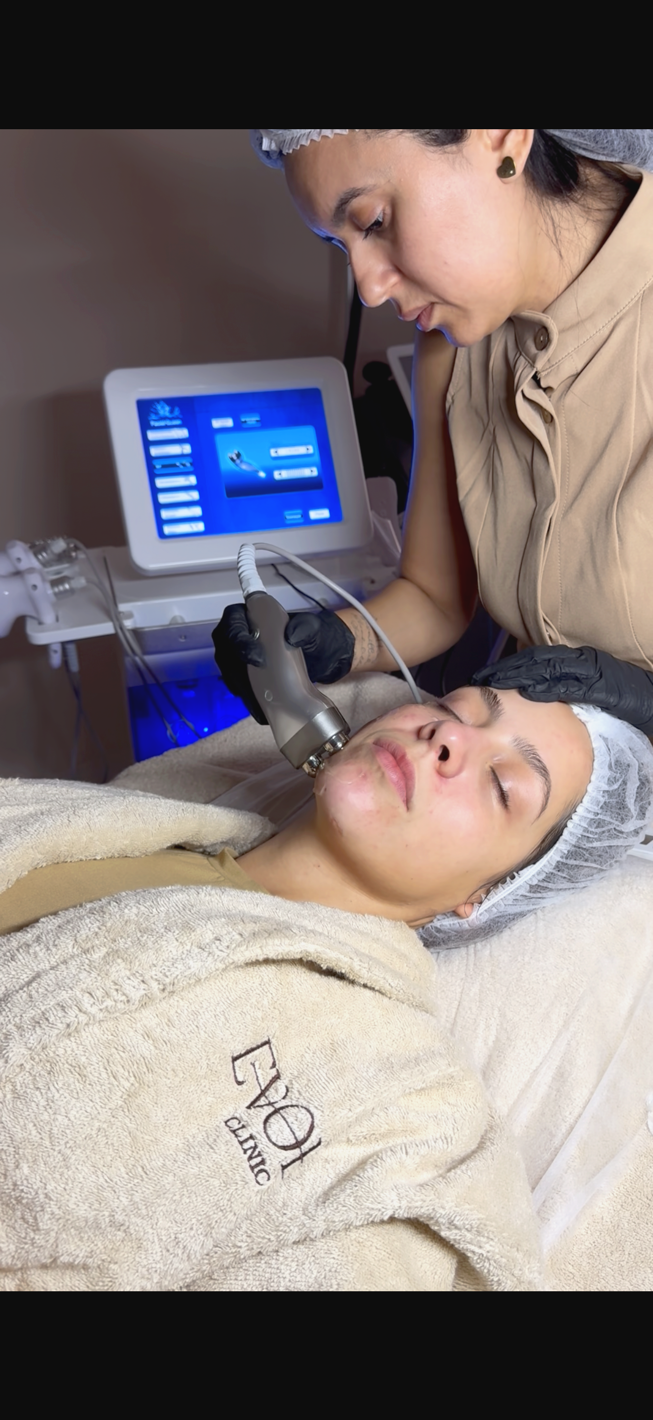 Limpeza de Pele Evolu: Limpeza mais profunda com tecnologia ultrassónica. Ajuda a renovar a pele, eliminar impurezas e melhorar a textura, proporcionando um aspeto mais saudável e luminoso.